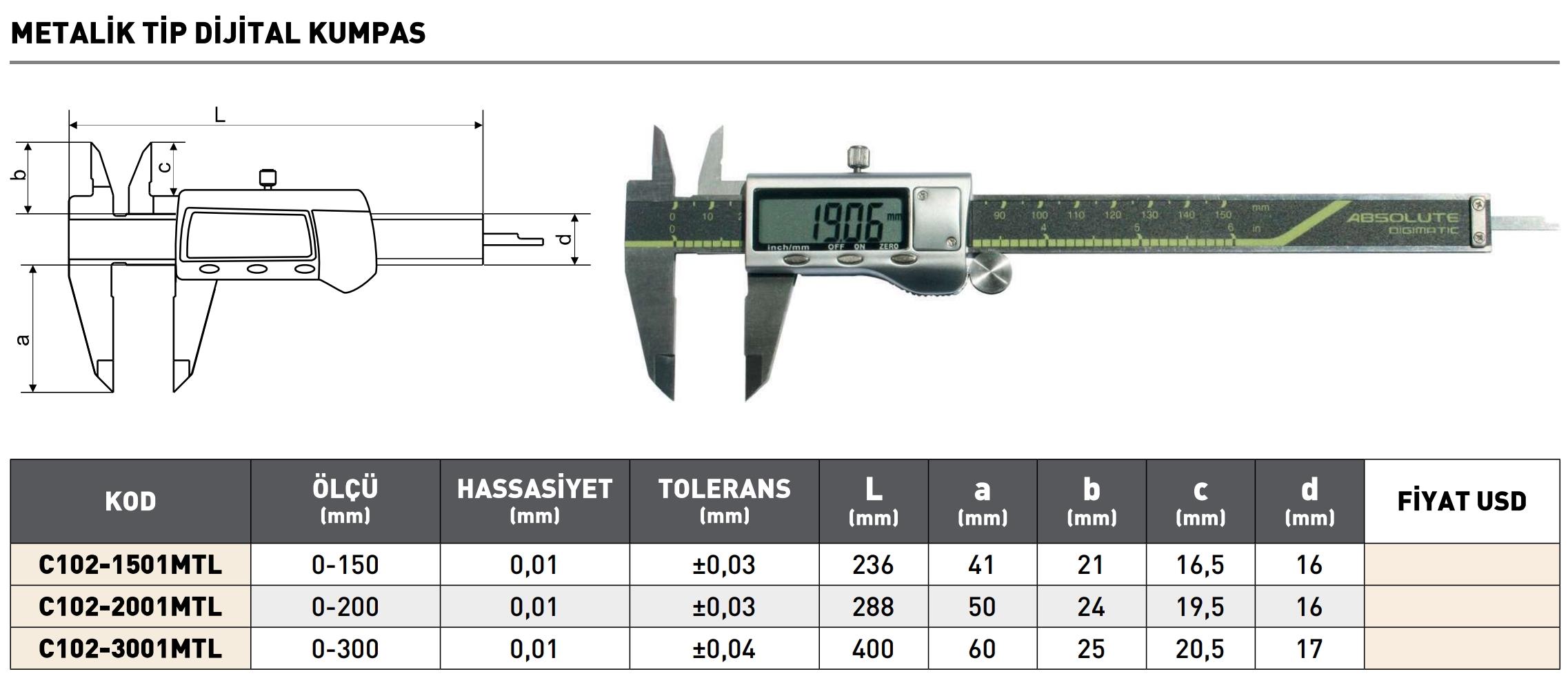 0-150MM Pld Metalik Tip Dijital Kumpas