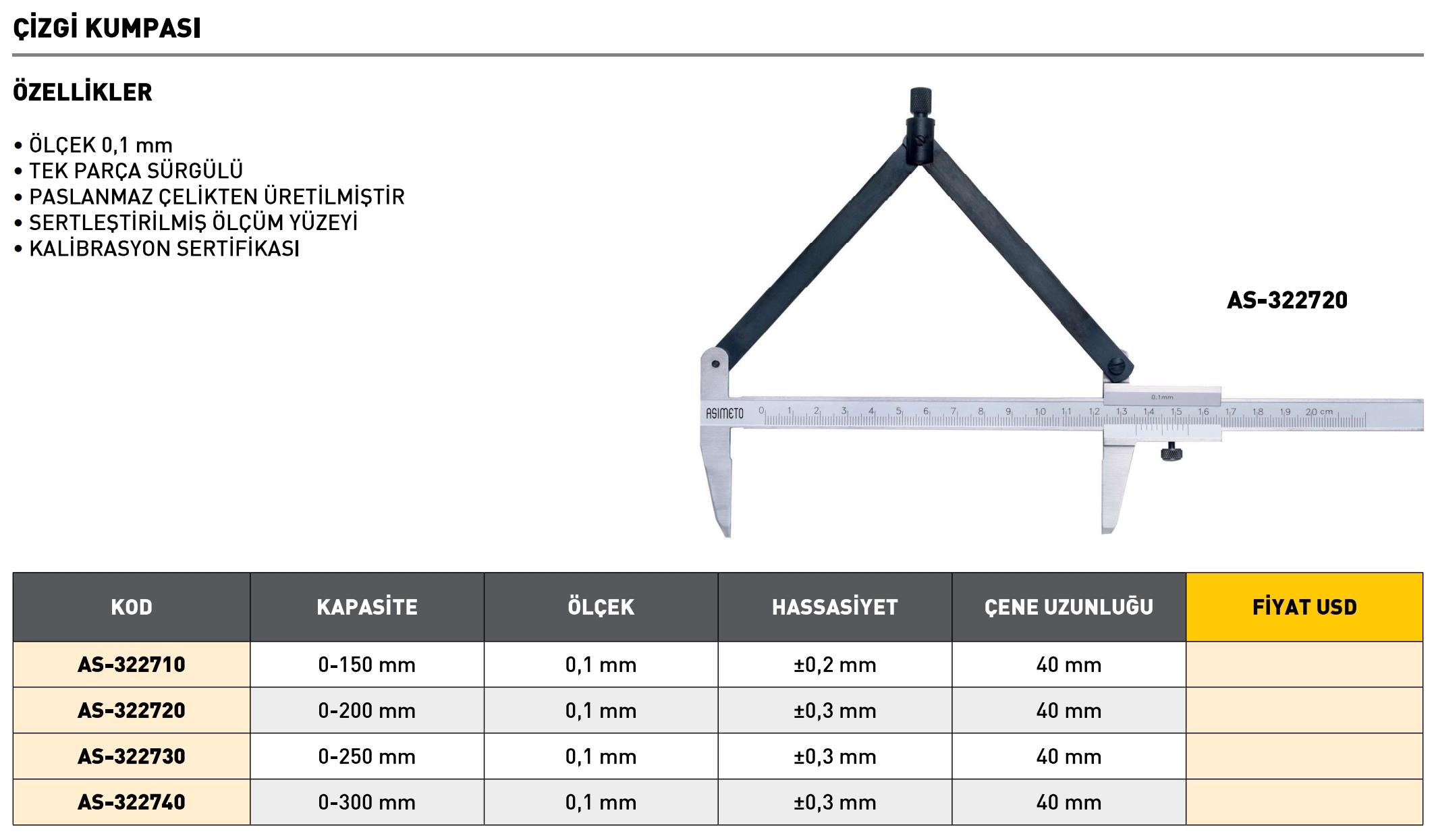 0-250MM Asimeto Çizgi Kumpası AS-322730