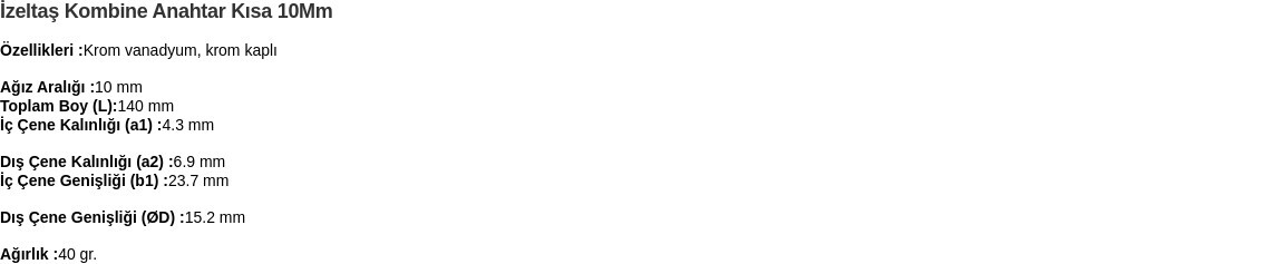 İZELTAŞ 0320 02 0010 10mm Kombine Anahtar Kısa Boy