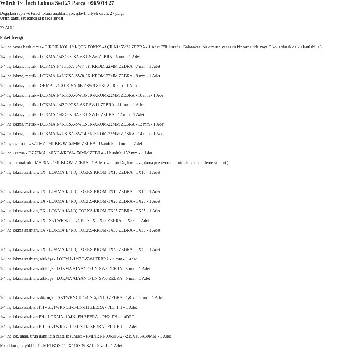 1/4 Lokma Seti 27 Parça