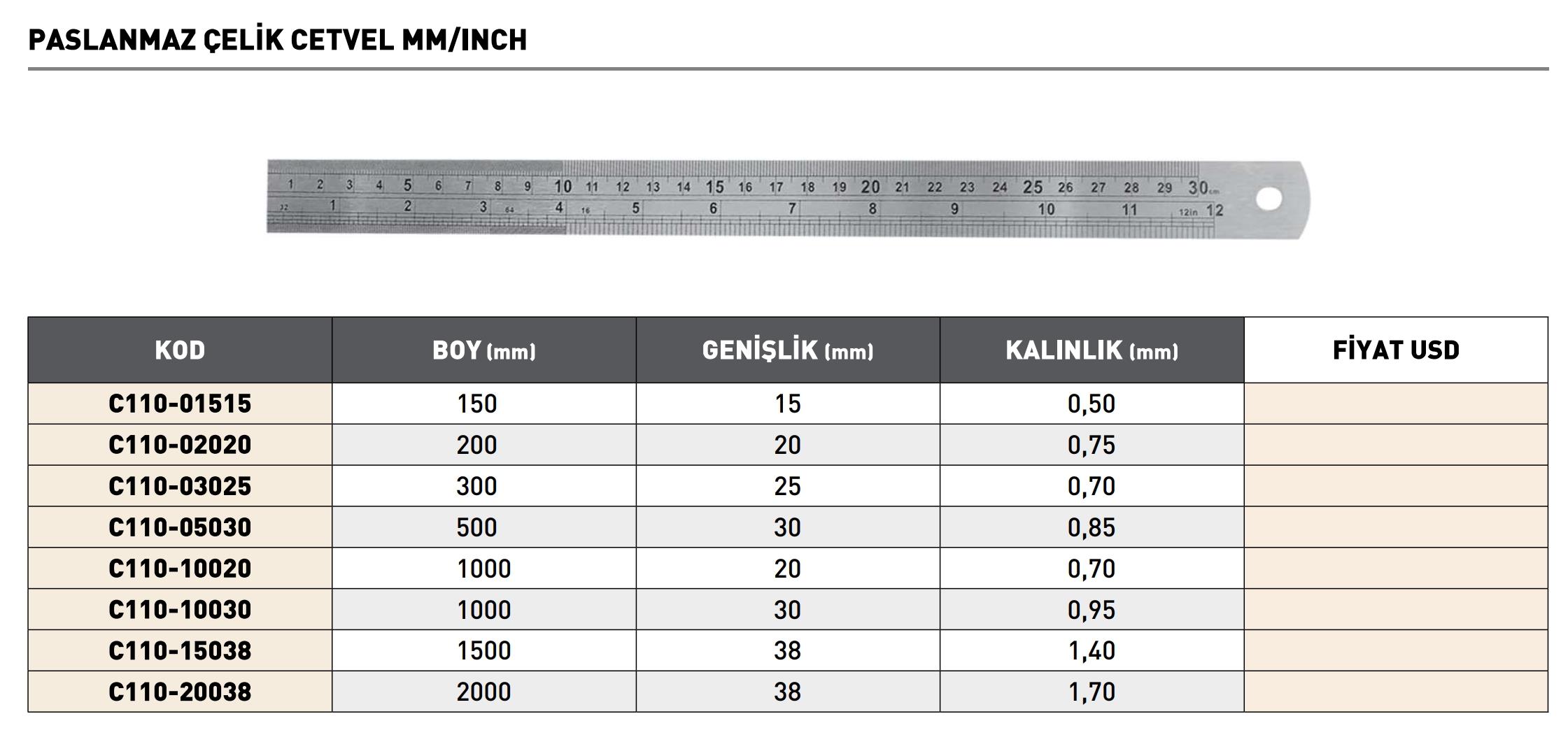 1000MM Pldmm/icnch Paslanmaz Çelik Cetvel