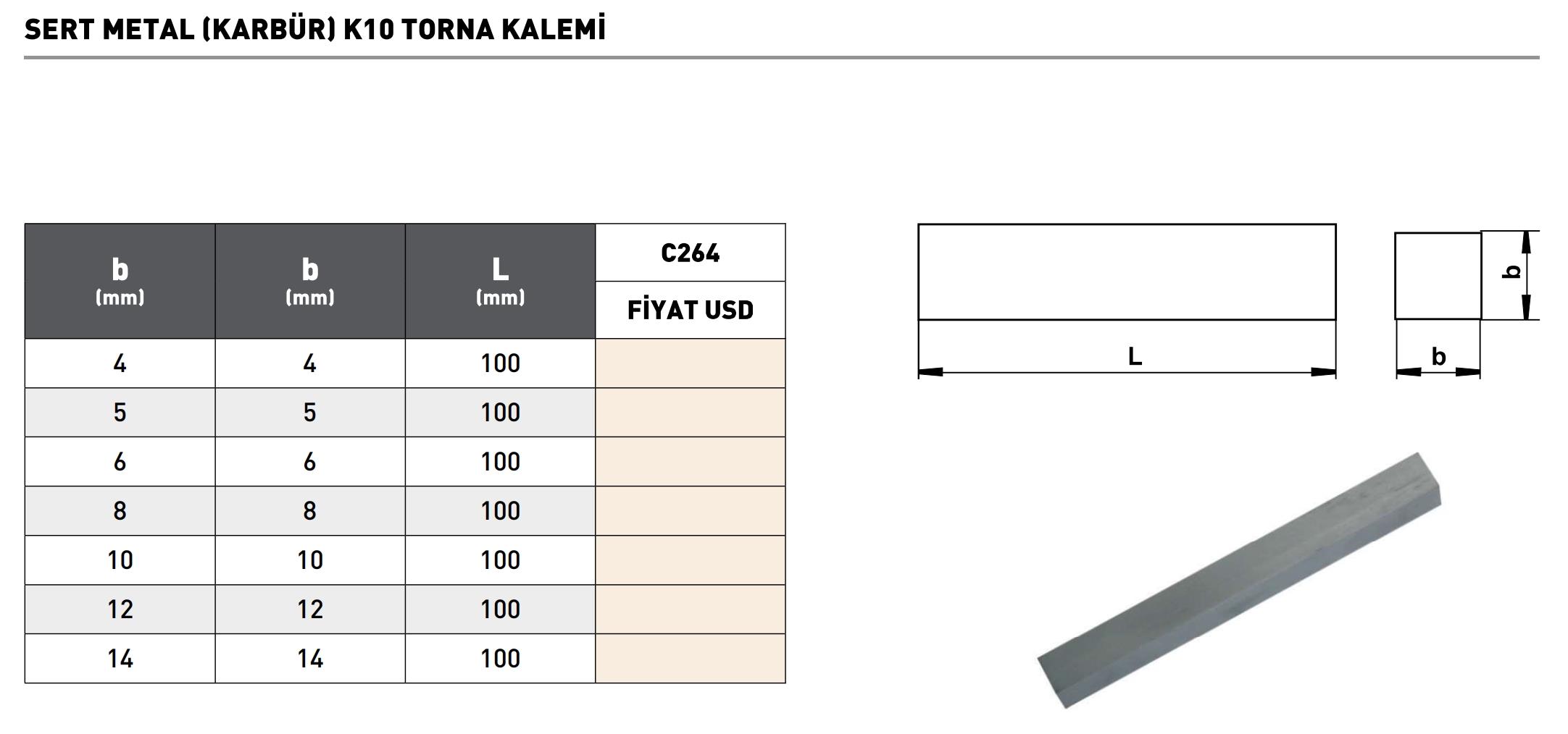 Fett 10X10X100mm Pld C264 Karbür Sert Metal K10 Torna Kalemi