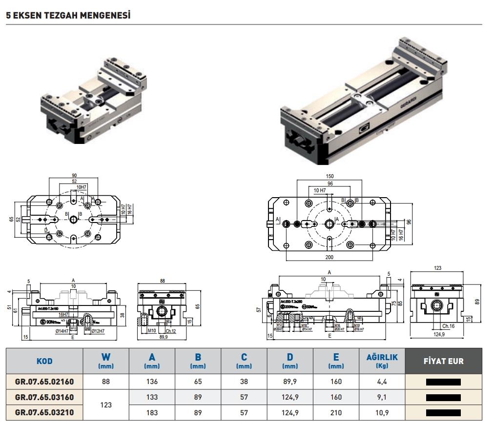 Fett 123X133MM Gerardi 5 Eksen Tezgah Mengenesi