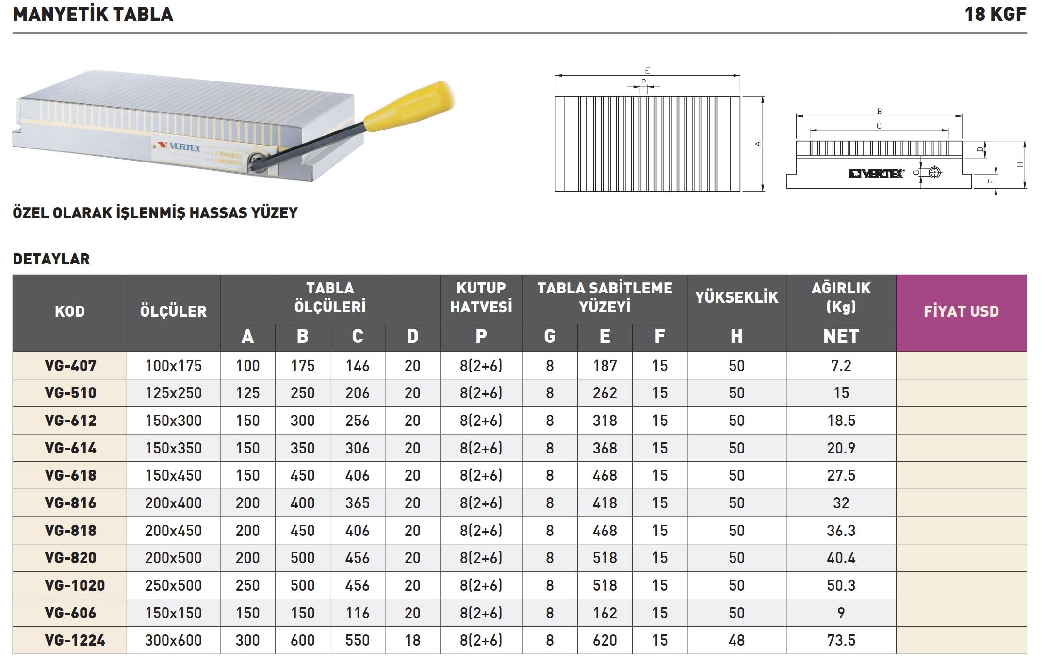 150X300MM Vertex 18KGF Manyetik Tabla VG-612