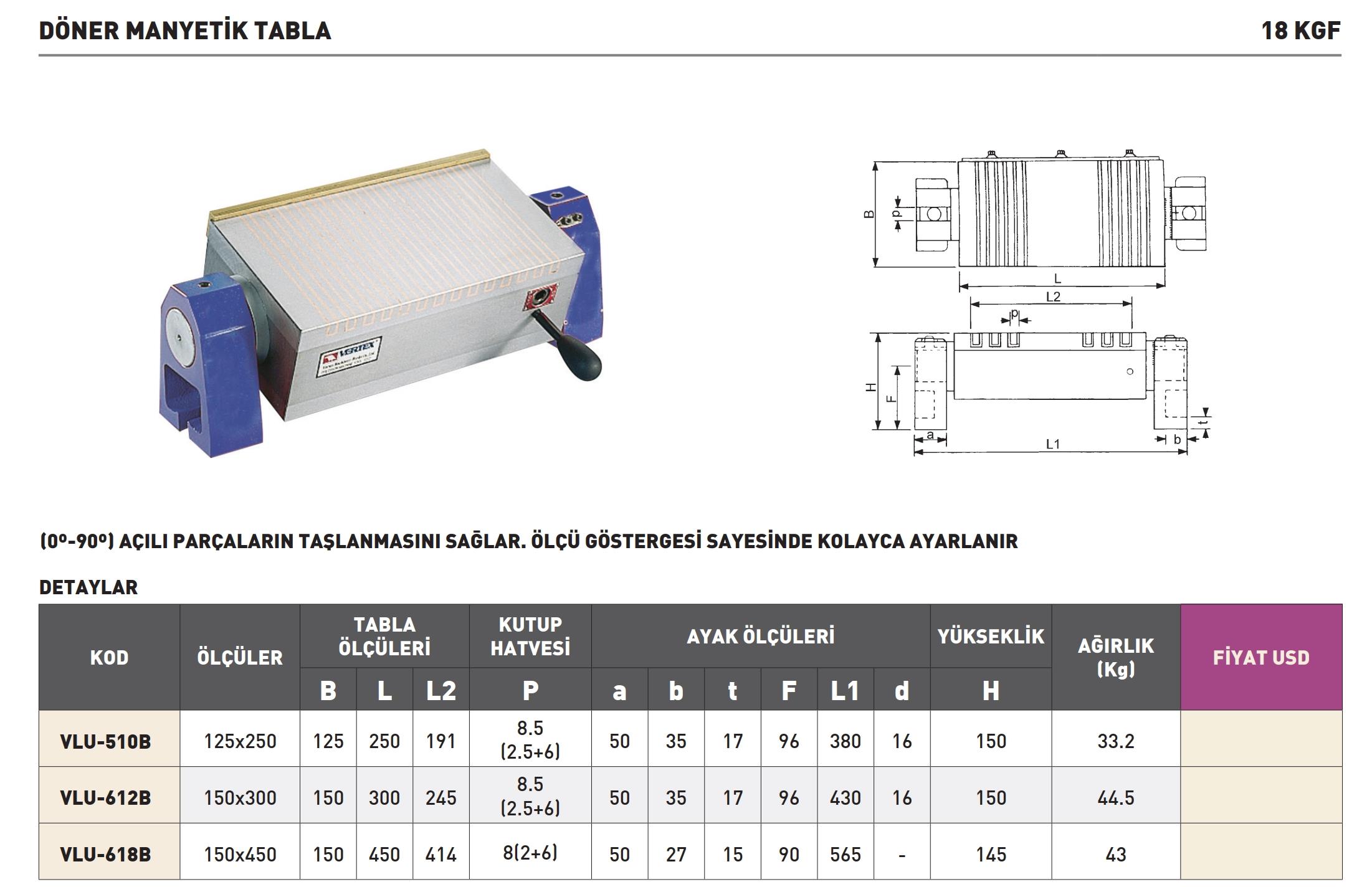 Fett 150X450mm Vertex 18Kgf Döner Manyetik Tabla Vlu-618B