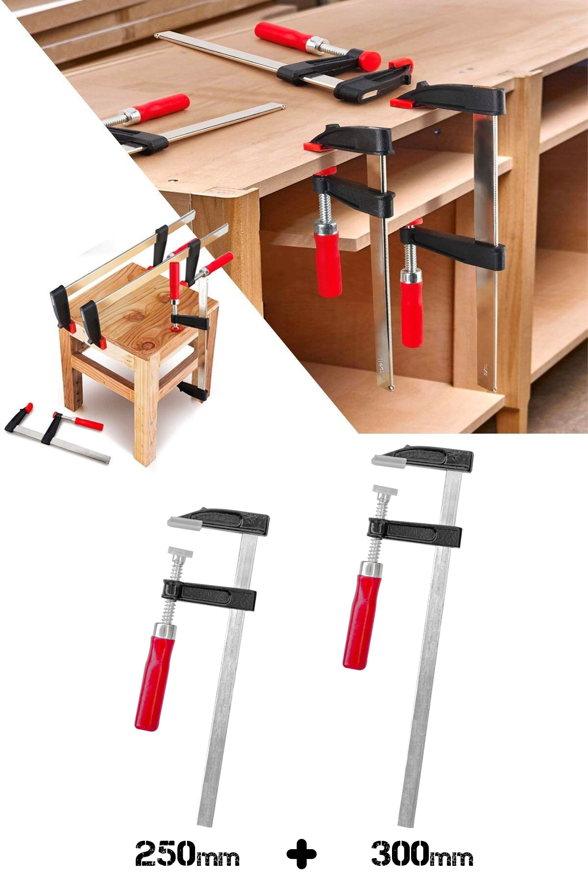 2 Adet Çelik F Tipi Mobilyacı Işkencesi 50x250mm Ile 50x300mm Marangoz F Kelepçesi * Bir sabit, bir hareketli çeneye sahip F tipi işkence.