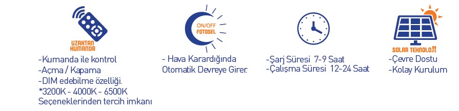 - Işık Rengi : 3200K - Günışığı,4000K - Ilık Beyaz,6500K - Beyaz