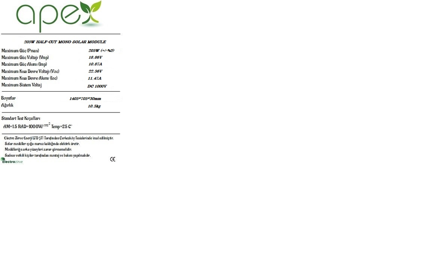 Güneş paneli, fotovoltaik hücreler üzerinden güneş ışığını elektriğe dönüştüren bir cihazdır. PV hücreleri, ışığa maruz kaldıklarında devre boyunca akarak çeşitli cihazları çalıştırmak veya pillerde saklanmak üzere doğru akım elektrik üretir. Half-cut paneller, genellikle yüksek verimlilik, gölge toleransı ve daha iyi performanslara sahiptirler. 205W Half-Cut Monokristal Güneş Paneli Kullanım Alanı Güneş panelleri, güneş enerjisinden enerji elde edilmek istenen her yerde kullanılabilir. Sanayi ve üretim tesislerinde, elektrik üretme amaçlı ev ve ofislerde, karavan ve teknelerde elektrik enerjisi elde etme gibi güneş ışınlarının olduğu her yerde kullanılmaktadır.
