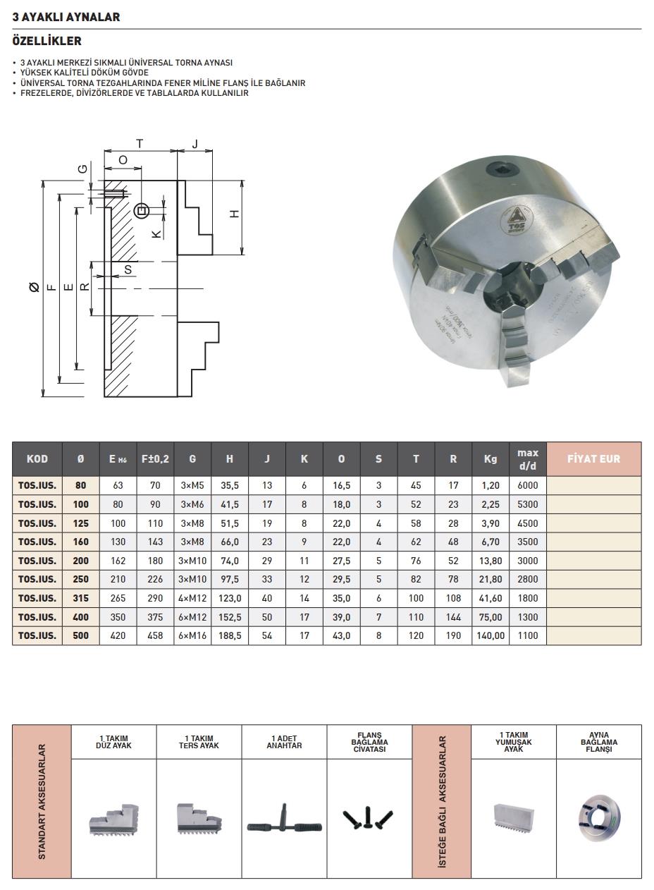 250MM Tos 3 Ayaklı Torna Aynası