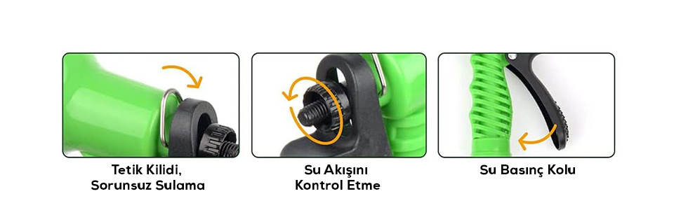 •🚿 Kilitli Tetik Mekanizması:Sürekli elinizle sıkmaya gerek kalmadan konforlu sulama.