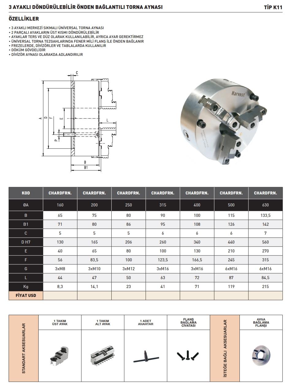 315MM Harvest 3 Ayaklı Döndürülebilir Önden Bağlantılı Torna Aynası