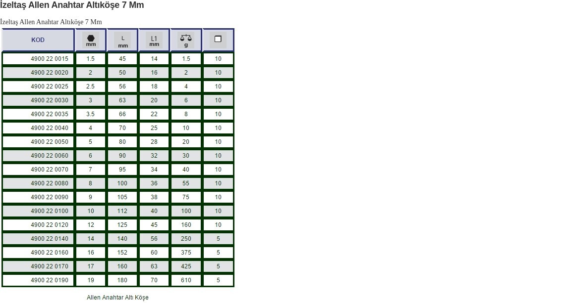 İZELTAŞ 4900220070 7mm Allen Anahtar Altı Köşe