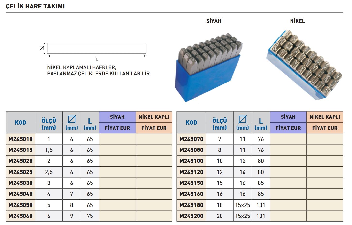 Fett 4mm Masus Nikel Çelik Harf Takımı M245040