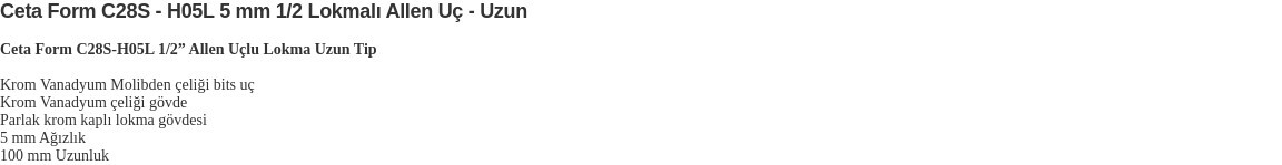 5 Mm Uzun Tip 1/2” Lokmalı Allen C28s-h05l