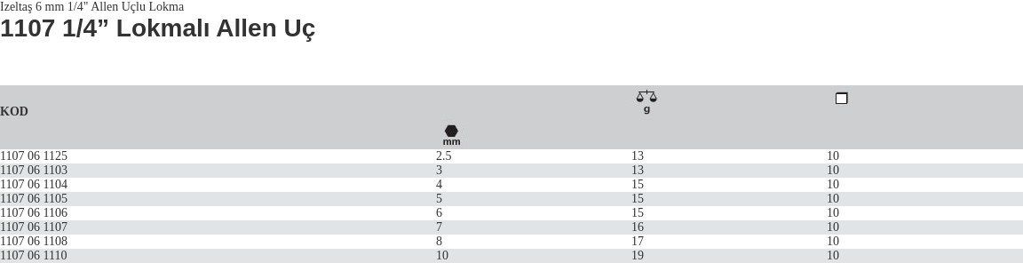 İZELTAŞ 6 Mm 1/4 Allen Uçlu Lokma - Izeltaş 1107061106