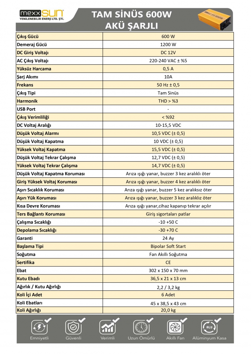 - Tam Sinüs Dalga Çıkışı: Elektronik cihazlarınız için ideal güç sağlar.