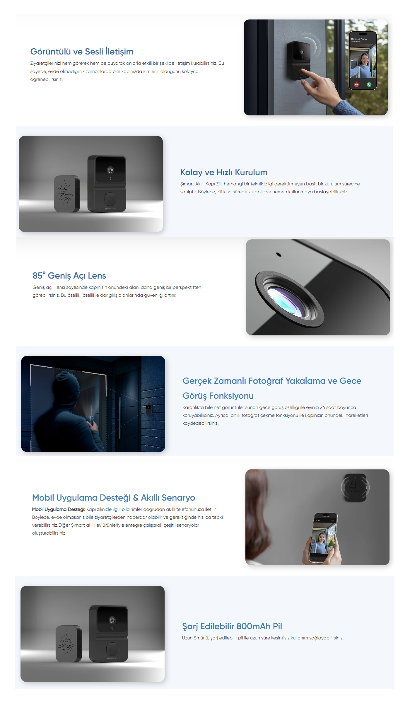Şımart Akıllı Kapı Zili, ev güvenliğinizi artırması vegünlük yaşamınızı iyileştirmesi için daha kolay ve etkili bir şekildeyönetmelerini sağlamak için tasarlanmış cihazlardır.