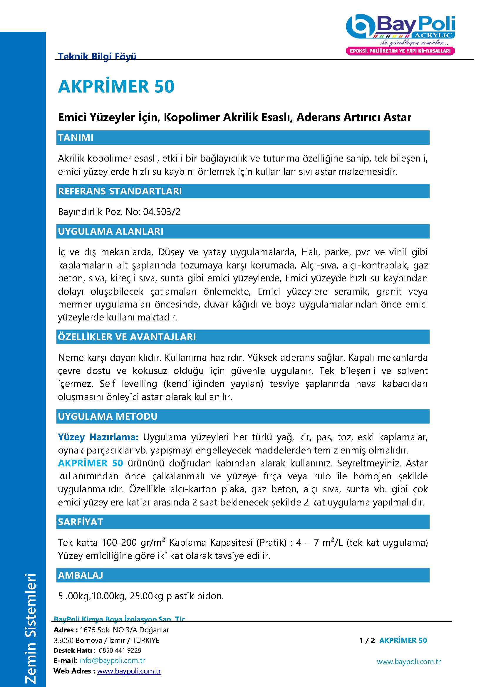 Akprimer 50 Aderans Artırıcı Tek Bileşenli Akrilik Esaslı Sert Beton Cilası 5 Kg - Süt Beyaz