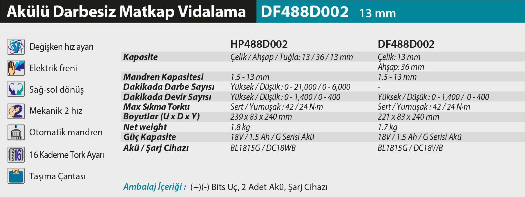 Akülü Darbesiz Matkap Vidalama Df488d002