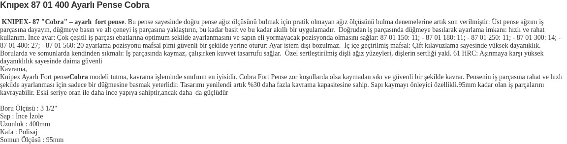 Ayarlı Pense Cobra 87 01 400