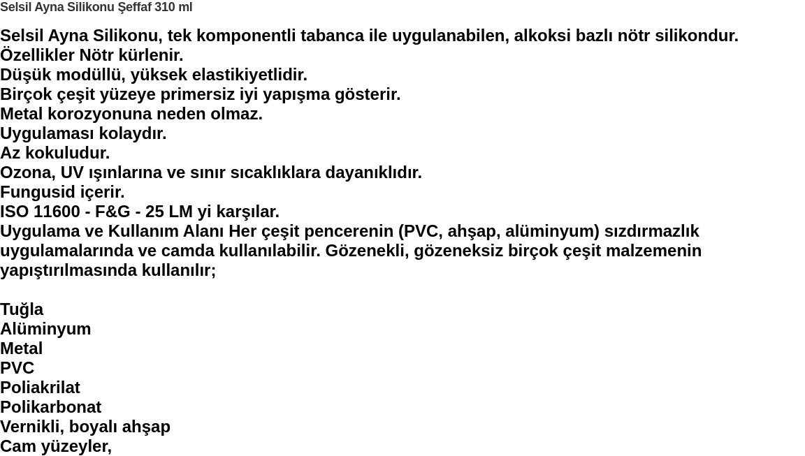 Ayna Silikonu Şeffaf 310ml