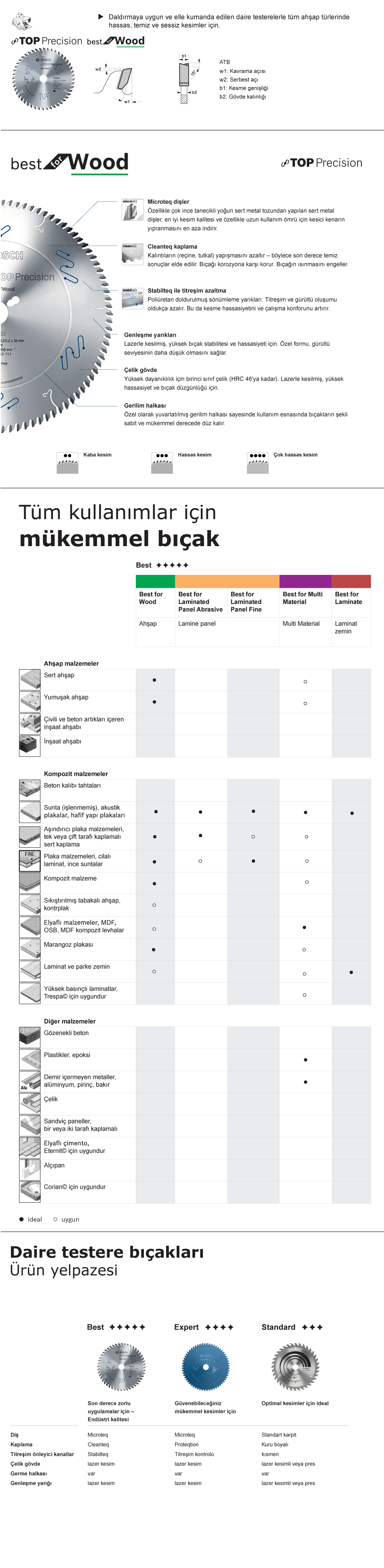 Bosch - Best Serisi Hassas Kesim Ahşap İçin Daire Testere Bıçağı - 165 X 20 X 1,8 Mm, 48 Diş