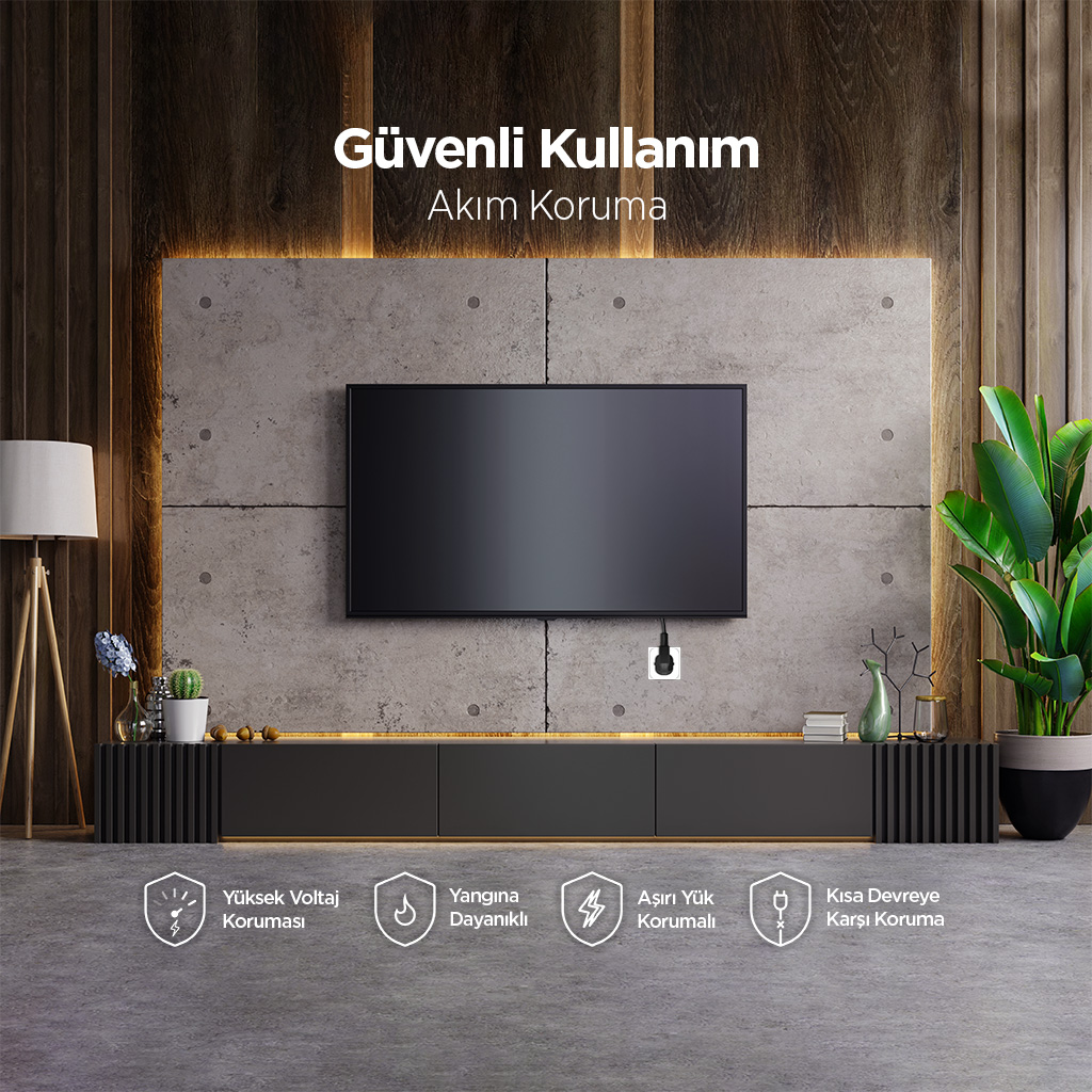 - Güvenli kullanım için akım korumalı