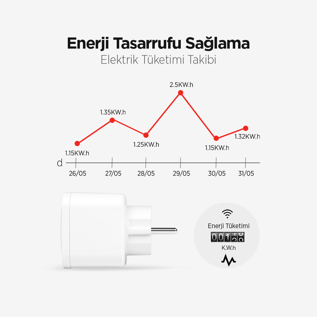 - Anlık, günlük, haftalık ve aylık olarak elektrik tüketimi takibi
