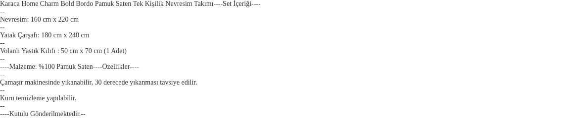 Charm Bold Bordo %100 Pamuk Tek Kişilik Nevresim Takımı