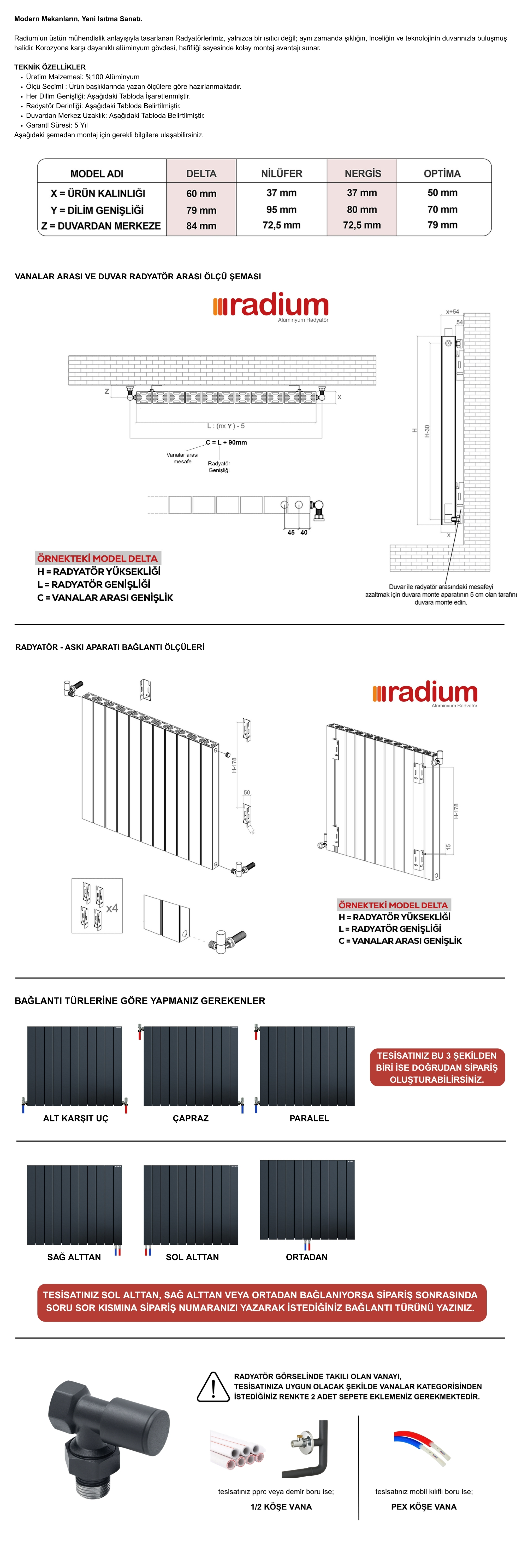 Modern Mekanların, Yeni Isıtma Sanatı.; Radium’un üstün mühendislik anlayışıyla tasarlanan Radyatörlerimiz, yalnızca bir ısıtıcı değil; aynı zamanda şıklığın, inceliğin ve teknolojinin duvarınızla buluşmuş halidir.; Korozyona karşı dayanıklı alüminyum gövdesi, hafifliği sayesinde kolay montaj avantajı sunar.; Düşük su hacmiyle maksimum performans sağlayarak hem estetik hem de enerji verimliliği sunar.; "Farklı renk ve ölçüler için mağaza profilimizi inceleyiniz.; " TEKNİK ÖZELLİKLER Üretim Malzemesi: %100 Alüminyum Garanti Süresi: 5 Yıl Aksesuar grubunda bulunan Vanalar fiyata dahil değildir.; Özel renk ve farklı ölçü seçenekleri için soru sor kısmına yazınız.; Tüm sorularınız ve istediğiniz özel ölçüler için Satıcıya Soru Sor kısmından iletişime geçebilirsiniz.; Memnuniyetle sorularınızı cevaplayabiliriz.; Müşteri memnuniyetine önem veren firmamız yüksek kalitede malzeme kullanımı ve en iyi işçiliğe sahiptir.