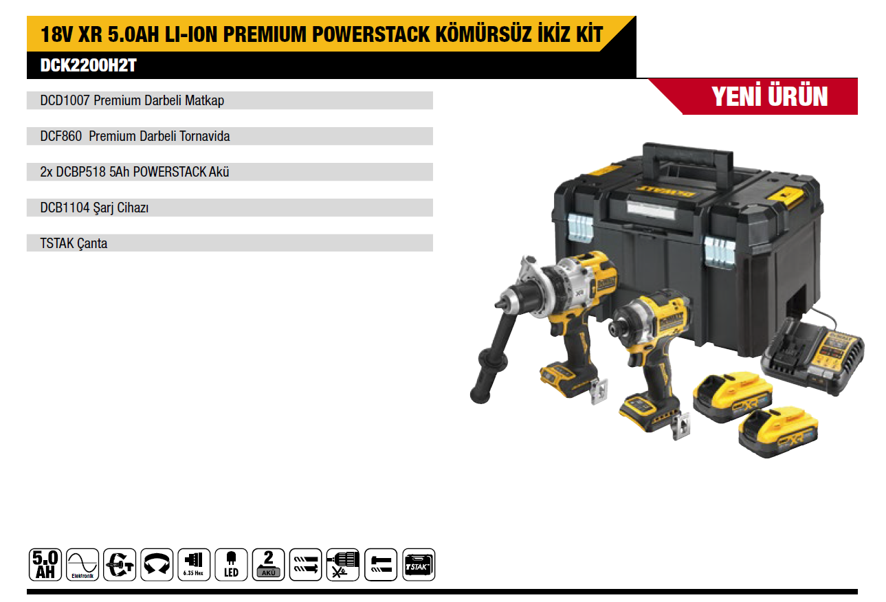 DEWALT Dewlat DCK2200H2T 18V 2X5.0 Ah Akülü 2'li Set