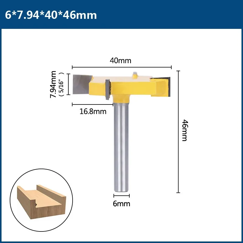 Düz Kesici Kılavuz 6 mm Uçları Ahşap Freze İçin 6X7.94X40X46 Ahşap Yönlendirici Bit 1/4 "6mm Shank 4 Kenar T Tipi Planya Kesici Ağaç İşleme Aleti Ahşap Endüstriyel Sınıf Freze