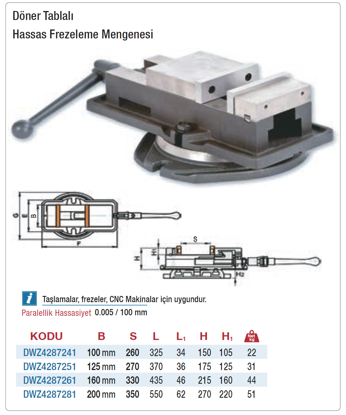 D&w DWZ4287241 100MM Döner Tablalı Hassas Frezeleme Mengenesi