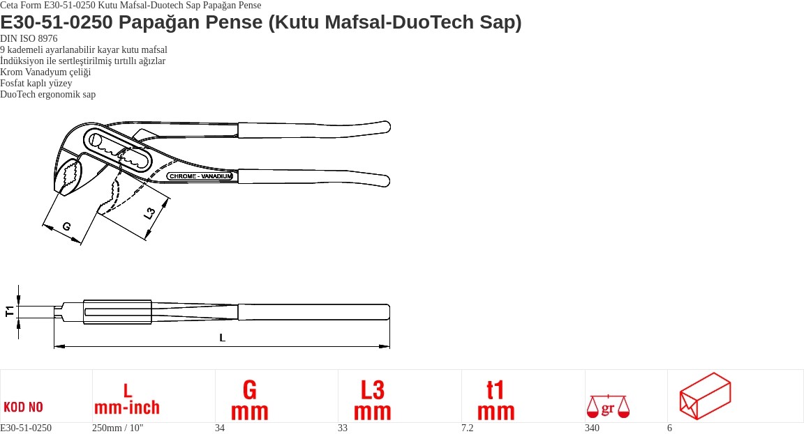 E30-51-0250 Kutu Mafsal-duotech Sap Papağan Pense