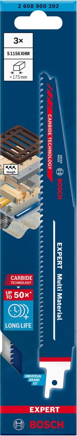 Bosch Expert S 1156 XHM Çok Amaçlı 225 mm 3’lü Panter Testere Bıçağı inşaatta yer alan tüm zorlu yapı malzemelerini, yüksek dayanıklılık sağlayan Carbide Teknolojisi sayesinde rahatlıkla keser.