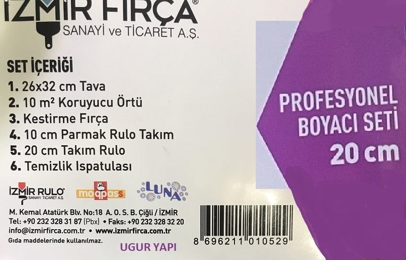 İzmir Fırça Luna Profesyonel Boyacı Seti 20 Cm Rulolu Büyük Boy (26x32) Boyama Tavası (Orijinal İzmir Fırça Ürünü)