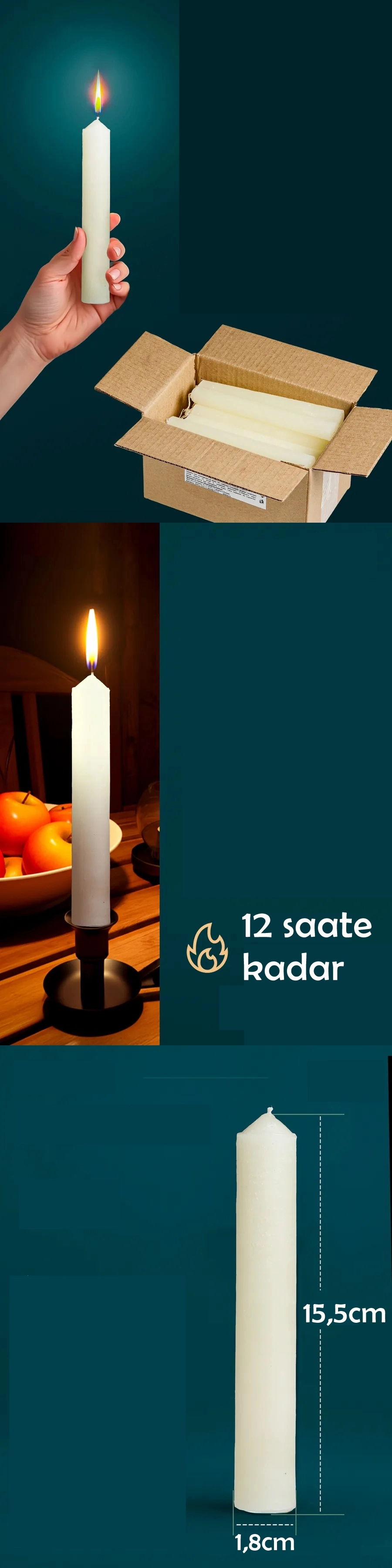 - 12 saat yanan mum