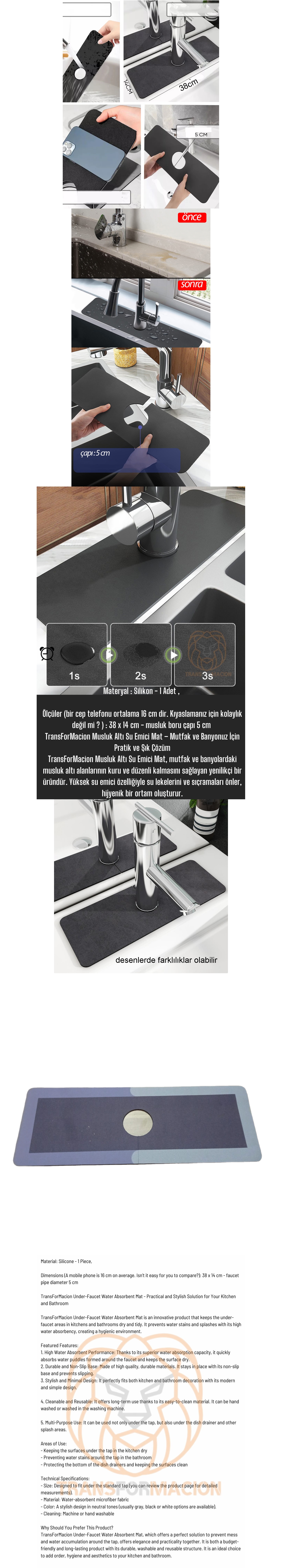 5. Çok Amaçlı Kullanım: Sadece musluk altı için değil, bulaşık süzgeci altı ve diğer sıçrama alanlarında da kullanılabilir.