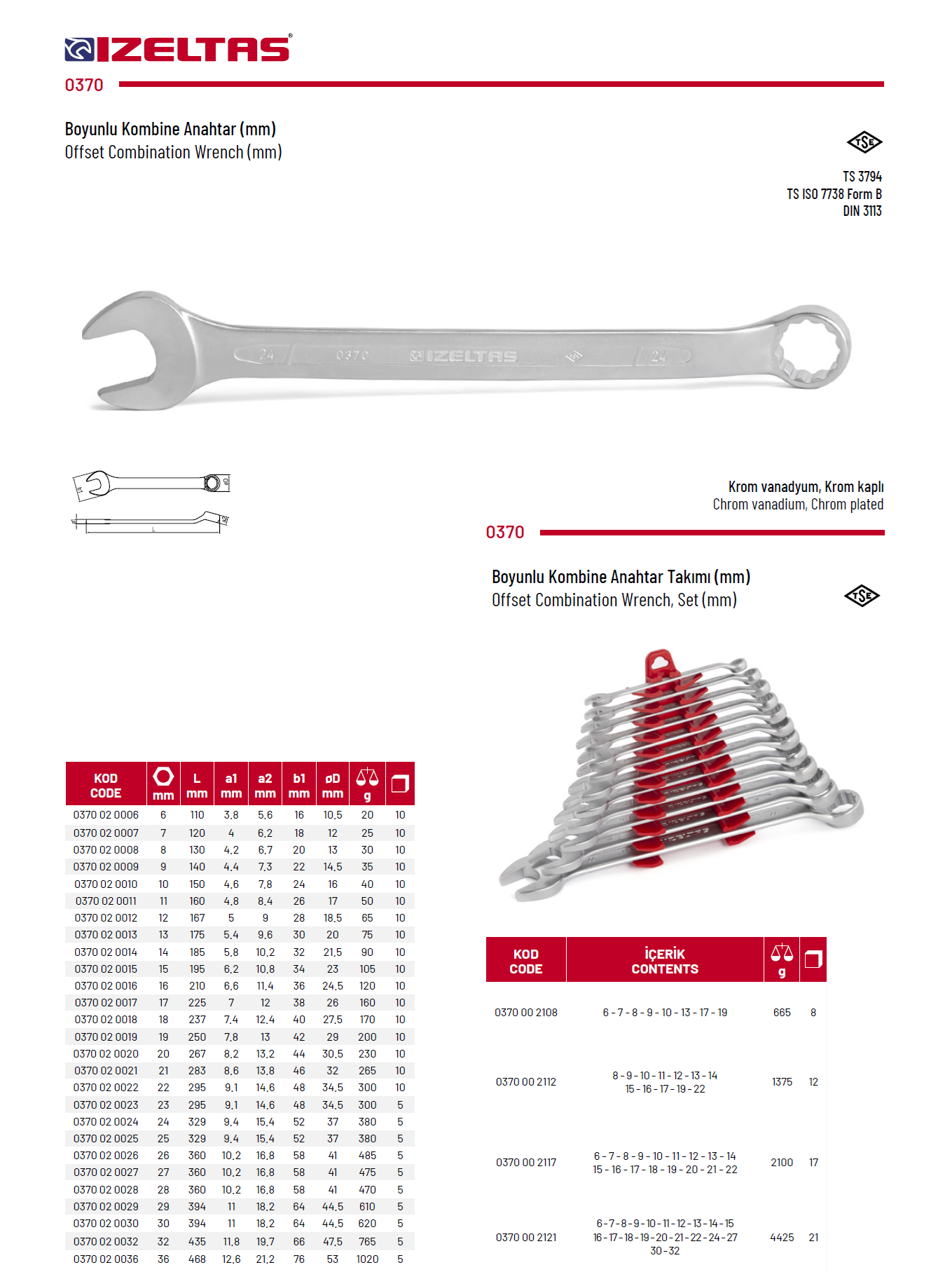 Izeltaş 0370 02 0012 12MM Boyunlu Kombine Anahtar