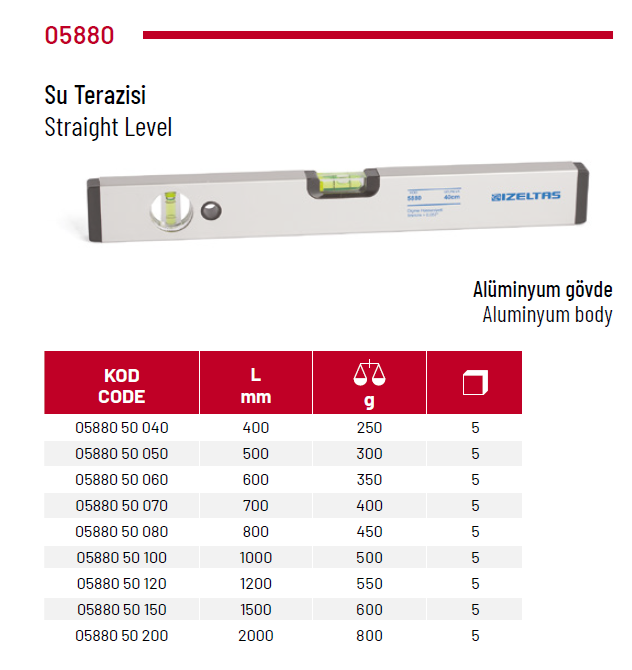 Izeltaş 05880 50 100 1000MM Su Terazisi