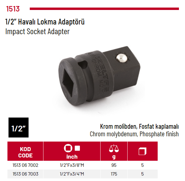 Izeltaş 1513 06 7002 1/2’’fx3/8’’m 1/2’’ Havalı Lokma Adaptörü