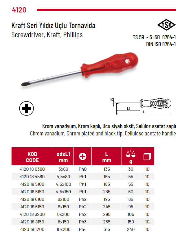 Izeltaş 4120 18 5150 4.5X150 Kraft Seri Yıldız Uçlu Tornavida