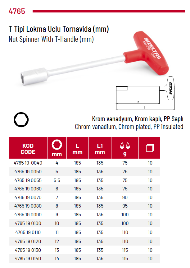Izeltaş 4765 19 0090 9mm T Tipi Lokma Uçlu Tornavida (Mm)