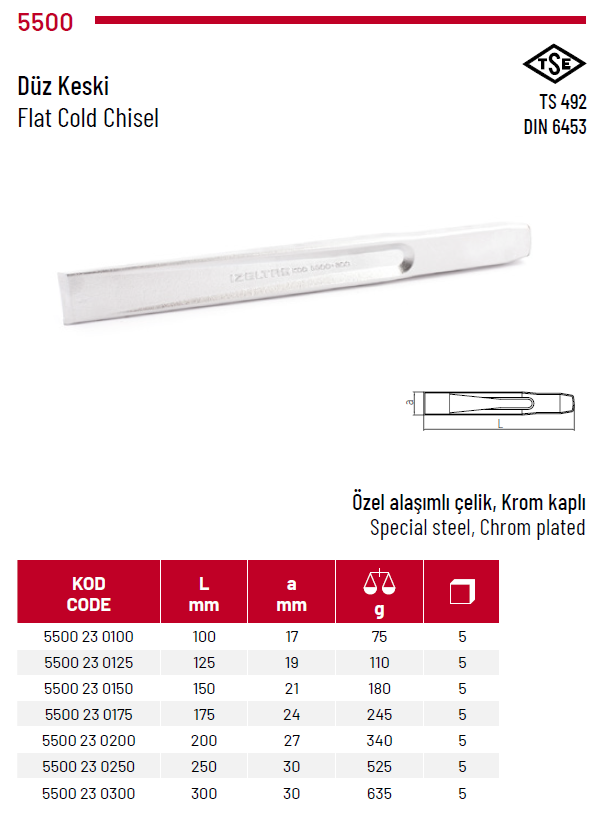 Izeltaş 5500 23 0200 200MM Düz Keski