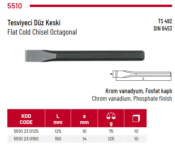 Izeltaş 5510 23 0125 125MM Tesviyeci Düz Keski