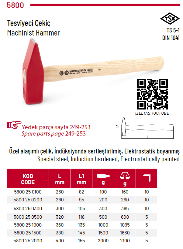 Izeltaş 5800 25 1000 1000GR Tesviyeci Çekiç
