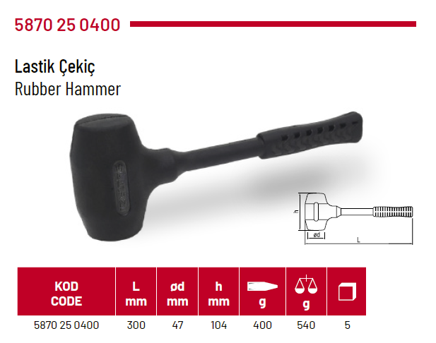Izeltaş 5870 25 0400 540GR Lastik Çekiç