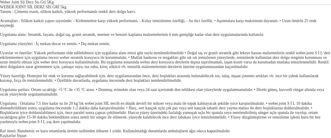 Jointsil Derz Dolgusu 5 Kg Sis Gri 434