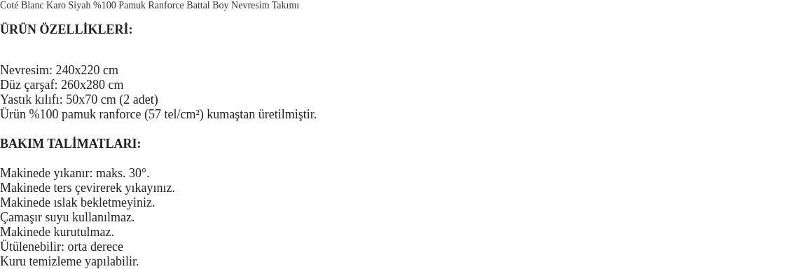 Karo Siyah %100 Pamuk Battal Boy Nevresim Takımı