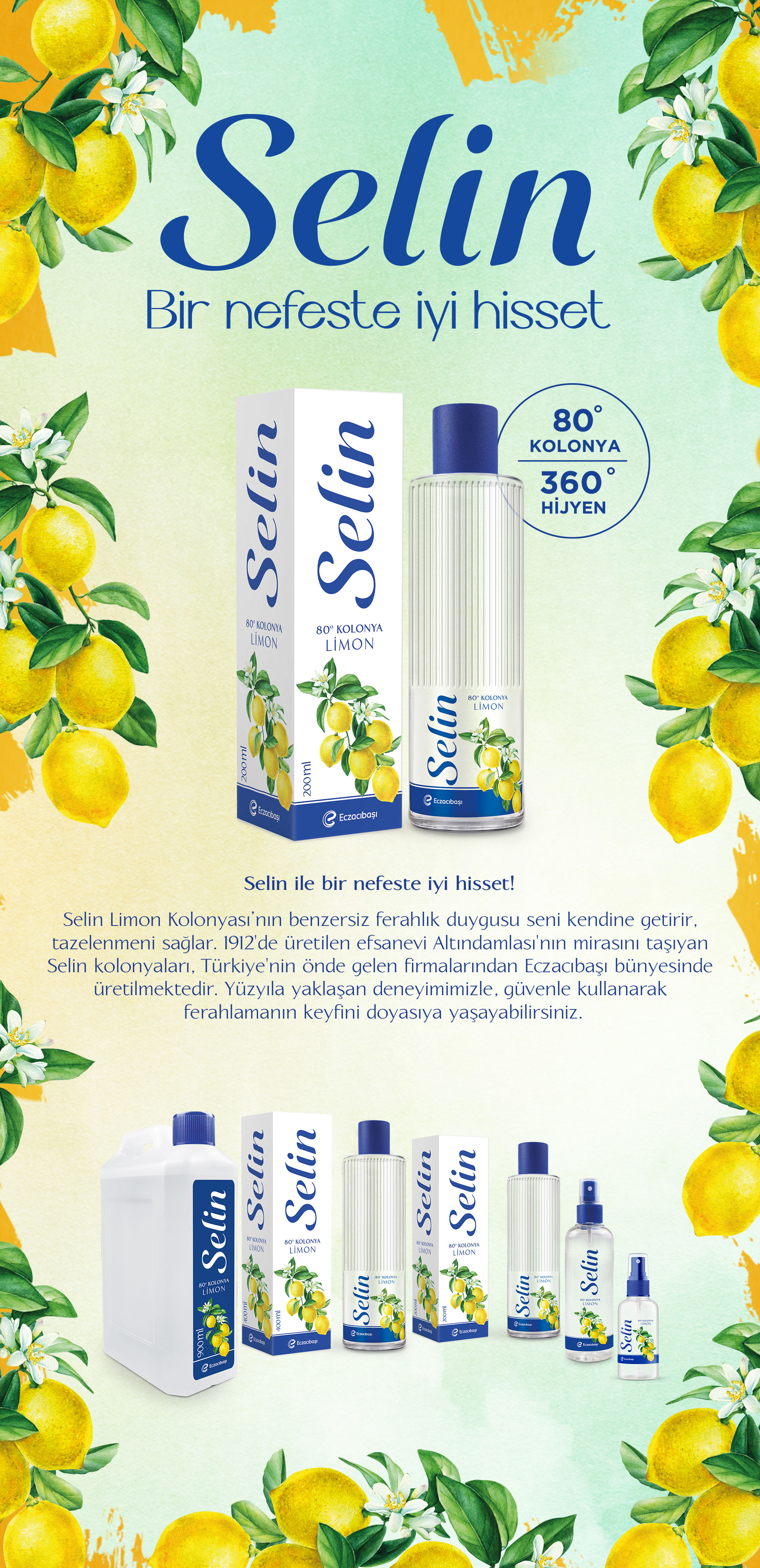 Selin ile bir nefeste iyi hisset! Selin Limon Kolonyası’nın benzersiz ferahlık duygusu seni kendine getirir, tazelenmeni sağlar. 80° alkol içeriği ile güvenilir hijyen sağlarken, keskin limon kokusu serinletip canlandırır. Limon kolonyası farklı notalara sahip olup, kokular arası uyumlu geçişleri ile kolonyanın karakteristiğini ortaya koyar. Selin Limon Kolonyası üst notası; narenciye, limon ve çam notlarından oluşur. Orta notalar, aldehidik ve limon notaları ile desteklenir. Dip nota olarak da bilinen alt notası ise portakal çiçeği esanslarından oluşur. 1912'de üretilen efsanevi Altındamlası'nın mirasını taşıyan Selin kolonyaları, Türkiye'nin önde gelen firmalarından Eczacıbaşı bünyesinde üretilmektedir. Yüzyıla yaklaşan deneyimimizle, güvenle kullanarak ferahlamanın keyfini doyasıya yaşayabilirsiniz. 900 ml pet ambalajda sunulmaktadır. Mutlaka ağzı kapalı bir şekilde muhafaza edilmesi gerekir. Ayrıca kolonyayı uzun süre boyunca güneş ışığına maruz bırakmaktan da kaçınılmalıdır.